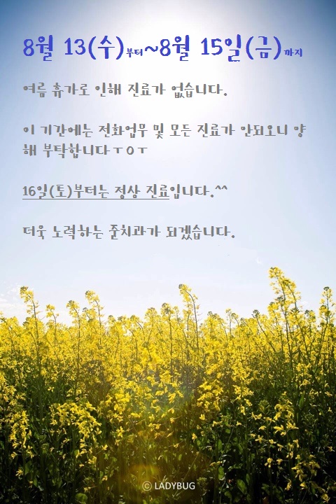 » 2014년 여름 휴가 안내입니다. file 로스윌준치과 2014.08.06 8394